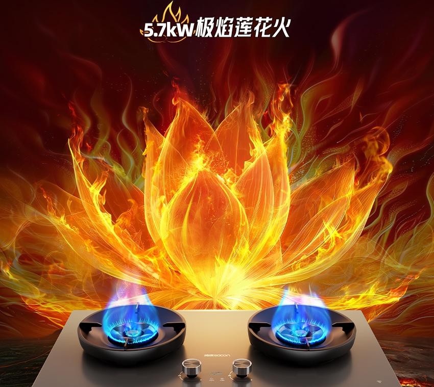 帅康炊烟灶以5.7kW极焰莲花火的顶级大火力打破火力不足局限。其极焰莲花燃烧系统采用莲花形宽域包锅设计,火焰均匀贴合锅底,聚能强、升温快,热量不散失。一键爆炒模式下,火力瞬时拉满,仅8 秒锅温升至 200℃,部分食材 18 秒即可鲜嫩出锅,锅气十足。